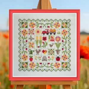 La broderie présentée a été réalisée sur une toile aïda extrafine 8 points de Zweigart coloris Country Vintage Mocha réf. 3326/3009 en brodant avec 1 brin de coton.