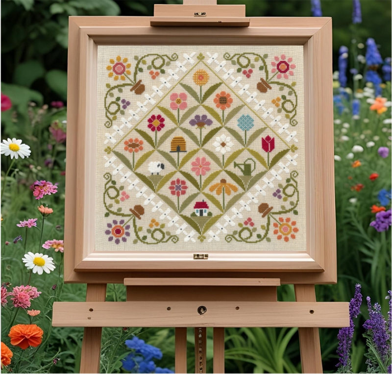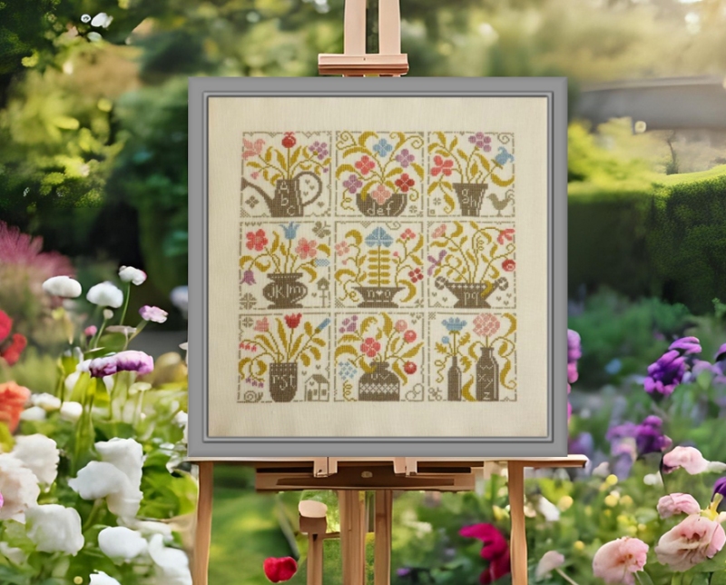 En 2024, c'est Floralies que j'ai proposé en SAL mystère, avec une case ou un angle à découvrir au fil du SAL en 8 étapes de juin à juillet, à raison d'une étape par semaine pour fleurir une toile en plein été.
