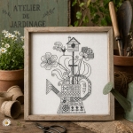 La broderie présentée a été réalisée sur une toile de lin Belfast 12,6 fils de Zweigart coloris Mocha réf. 3609/309 en brodant avec 2 brins sur 2 fils de toile.