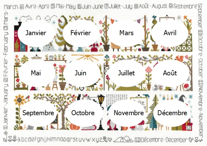 ATTENTION, les dimensions ci-dessous concernent UNIQUEMENT la 1re bande, en haut, de janvier à avril, SANS la bordure de texte.